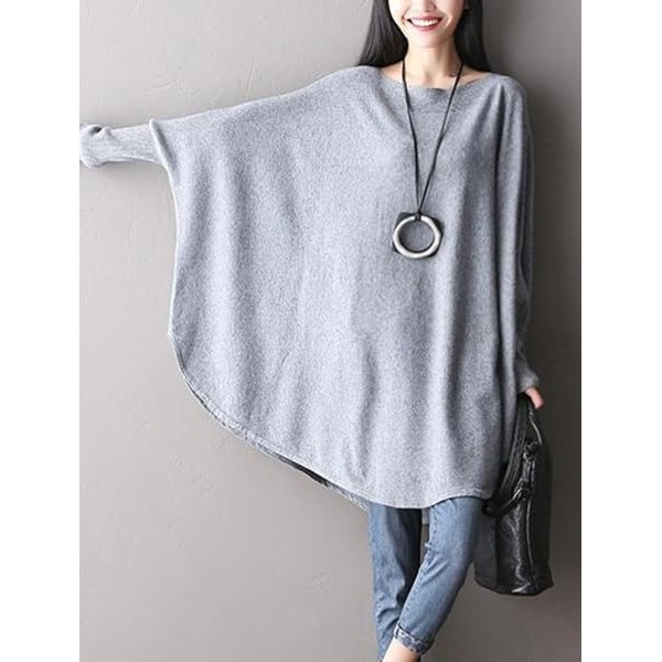 - FTCayanz Women's Bat Tunic Top Plus Size Blouse Grey