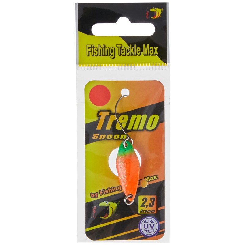 FTM Spoon Tremo 2.9 cm - Trout Blinker for Ultra Light Fishing for Trout, Trout Bait for Spin Fishing, Spinner Bait, Blinker, Colour: Orange/Green/Orange, Weight: 2, 3 g