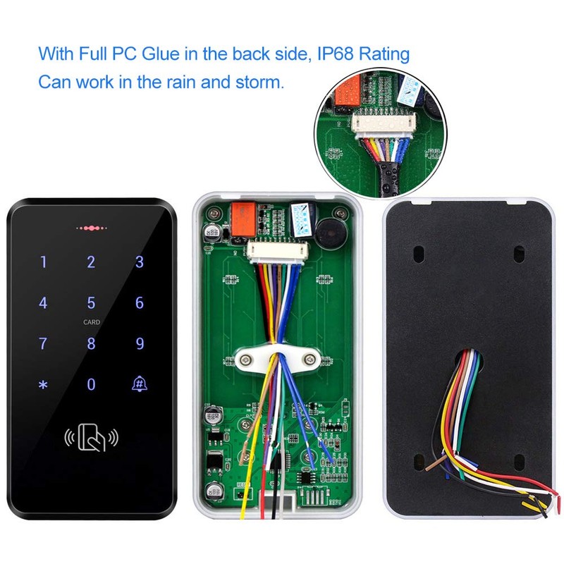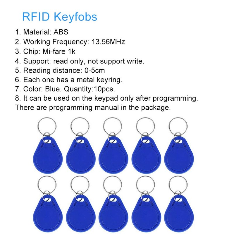 - 4. Package including RFID keypad + 10pcs blue IC 13.56MHz Keyfobs. Applications: Home/ hotel/ office/ apartment/ villa access control system, etc