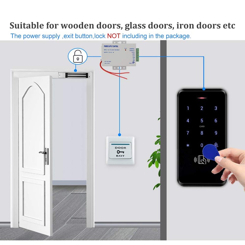 FTSTech Door Access Control System, SECURITY_SYSTEM, 13.56MHz IC Card, Touchscreen, IP68 Waterproof, 3000 User, Corded Electric, Blue Keyfobs(10), DC12V