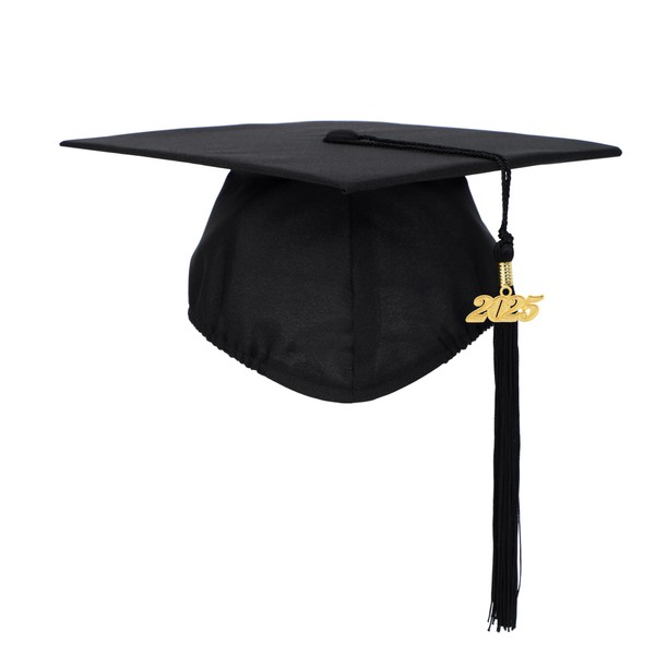 FtyFty Unisex Adult Matte Graduation Cap with Tassel Year Charm (Black)