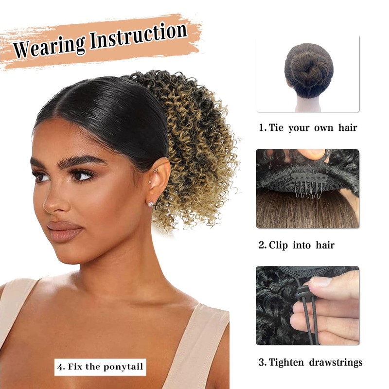 - 【Easy Use】Tie your hair into a secure bun insert the two invisible clips of the ponytail into the bun, and tighten the elastic band for secondary reinforcement.