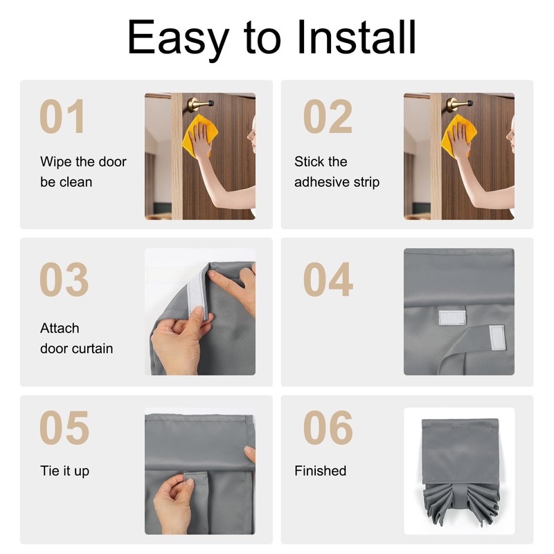 - EASY INSTALLATION: These door curtains are designed for hassle-free hanging with no need for tools, rods, or drilling. Simply attach the adhesive strip to the glass and secure the curtain panel in place. The strong adhesive tabs ensure a firm hold, allowing the curtain to hang smoothly for a clean, elegant look.