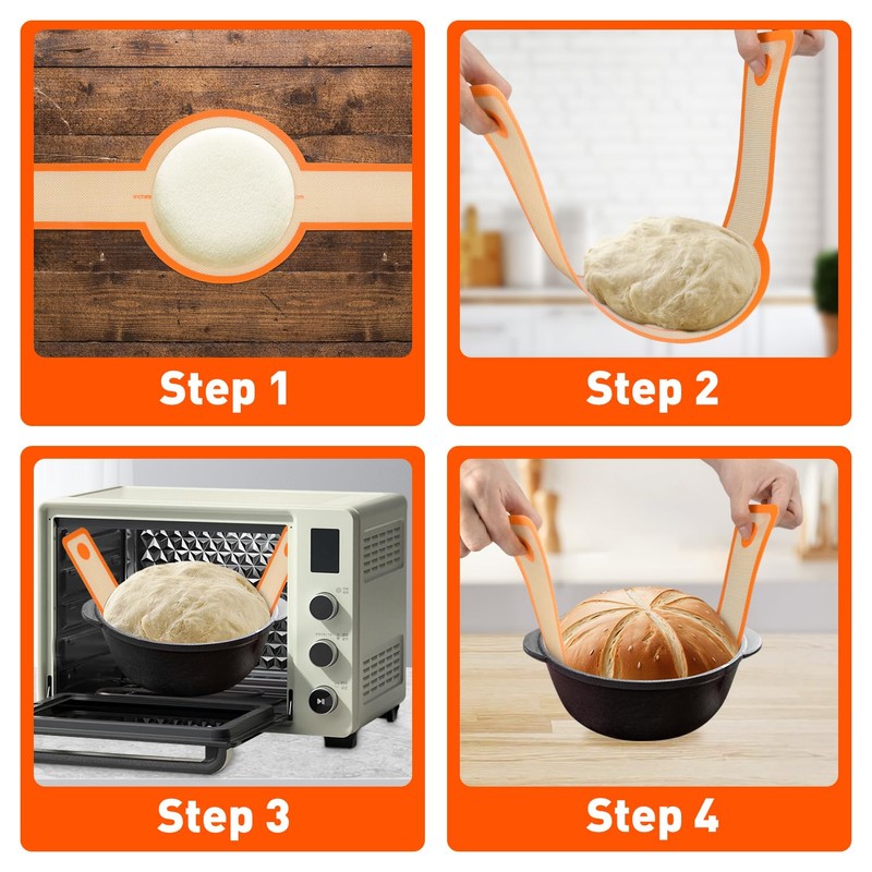 - Food Grade Silicone Bread Sling: Silicone bread sling is made of 100% food-grade silicone, BPA-free, odorless. The set comes with two bread slings, a silicone baking brush, and a baking shovel. No more worries about the dough being difficult to transfer and sticking to the bottom!