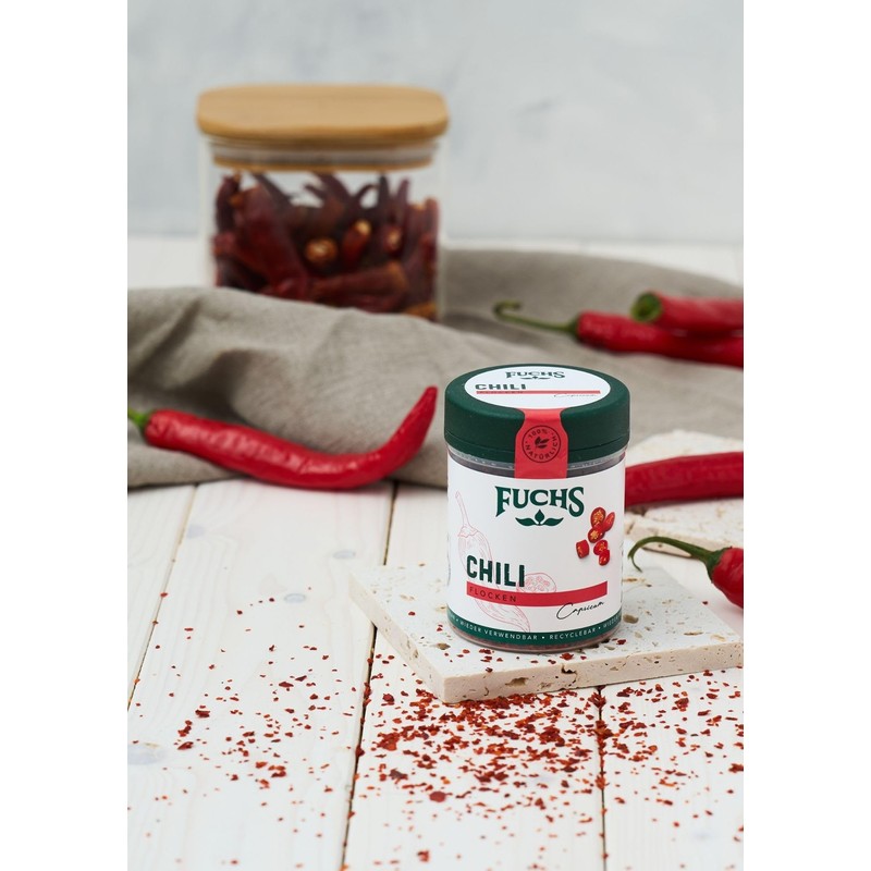 Fuchs Spices - Chili Flakes - Ideal as a Topping on Meat Dishes or in Couscous and Bulgur - Natural Ingredients - 50 g in Reusable, Recyclable Tin
