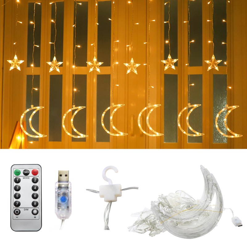 - Led Curtain String Light: Moon and star curtain lights instantly create a whimsical and magical ambiance, evoking the enchanting spirit of Christmas.
