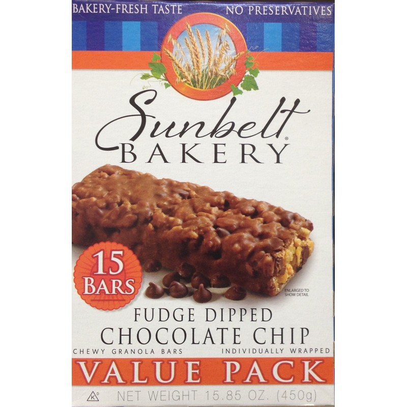 A chocolate lover's dream, Sunbelt Bakery Fudge Dipped Chocolate Chip Chewy Granola Bars is a must-have pantry snack! Rolled oats and sweet mini chocolate chips are dipped in scrumptious chocolatey fudge to add an extra layer of fun to the flavors you know and love. Each bar is made with 6-grams of whole grain and no preservatives. They're great to keep at your desk for the mid-afternoon slump or to have with your banana at breakfast! DISCLAIMER: These are perishable items. We recommend refrigerating or freezing any product that will not be consumed before the best-by date printed on each box.