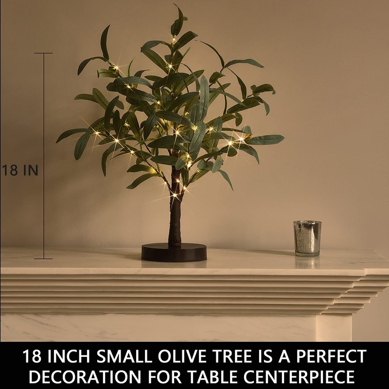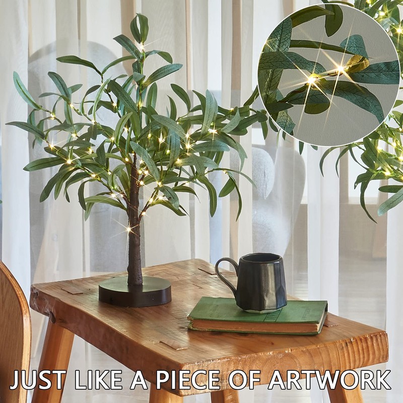 Fudios Little Lighted Tree with Timer 18in 50 LED USB Battery Operated Table Top Bonsai Olive Trees Light Artificial Plant for Home Decor Indoor