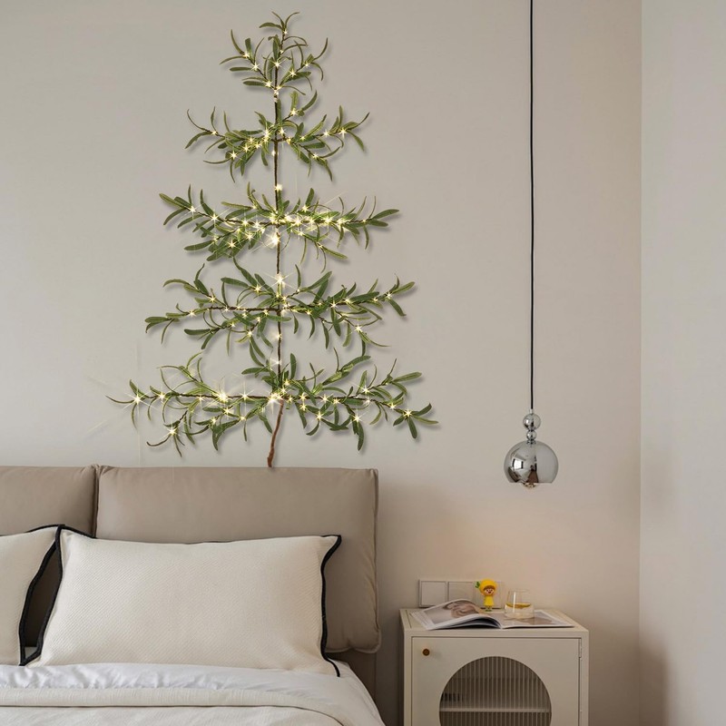 Fudios Olive Wall Christmas Tree with Lights 140 LED 3.5FT Prelit Hanging Greenery Branch Garland with Timer for Home Window Christmas Holiday Decoration