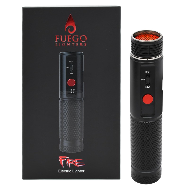 Fuego Fire Electric Cigar Lighter Kit – Rechargeable Windproof USB-C Coil Lighter w/On-Off Switch & Dual Power, 2 Heating Coils + Cherry Picker Tool – Lights Cigars ≤ 62 Ring Gauge