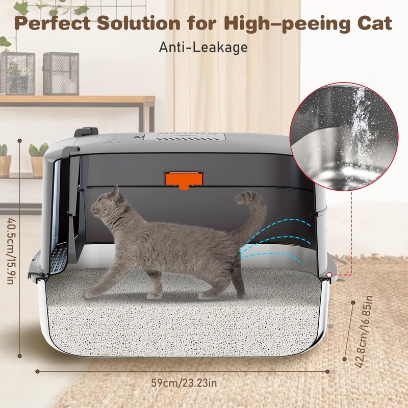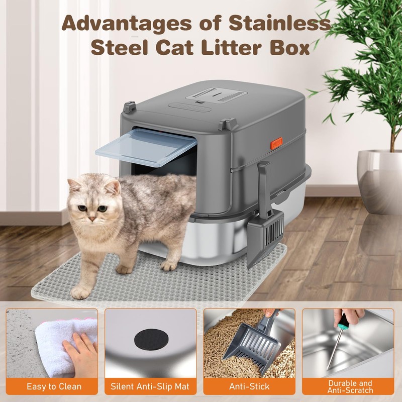 • 【Superior ABS and Stainless Steel Material】Ppgraded cat litter box made of High quality stainless steel, which is non-stick and easy cleaning by simply wiping litter pan, the ABS removable top lid is sturdy and durable with service life 10 years, perfect choice for long term use.