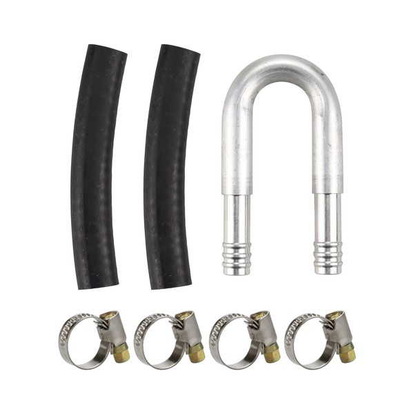 - Package Contents: Aluminum u bend piece, diesel fuel rated hose, 4x fuel line specific clamps.
