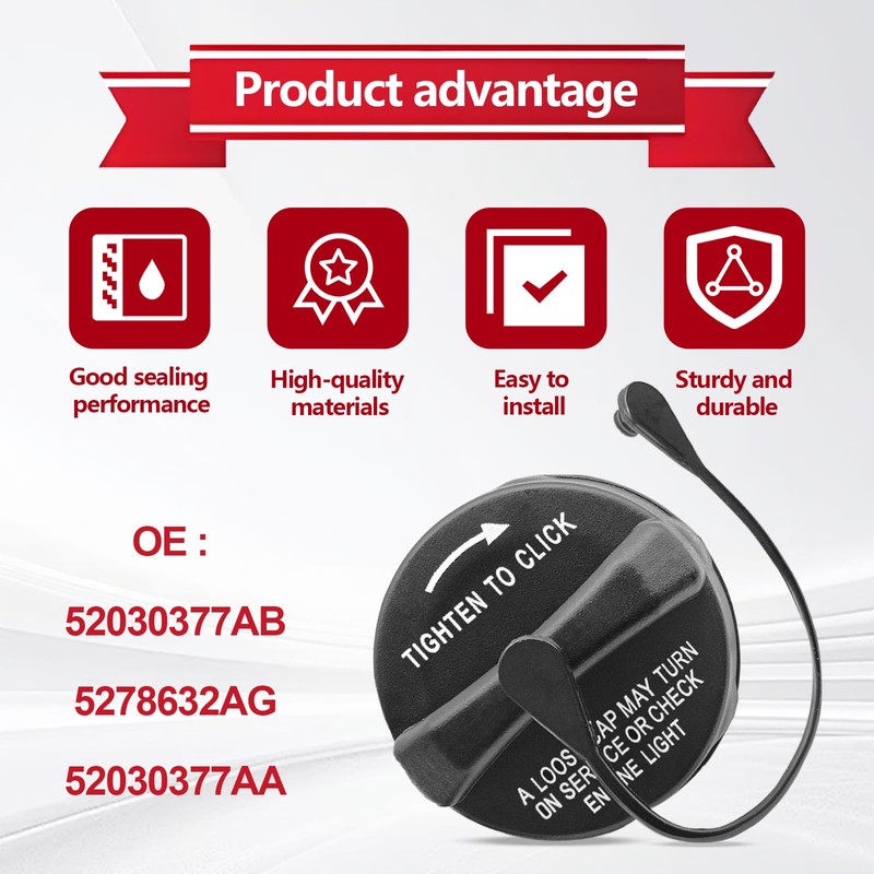 - High - Quality Replacement Gas Cap: Our fuel tank gas cap is crafted from top - grade ABS plastic and metal components. This combination ensures outstanding durability. It features smooth, flexible rotation. it's a direct substitute for 52030377AB, 5278632AG, 52030377AA gas caps, meeting or surpassing OEM quality standards.