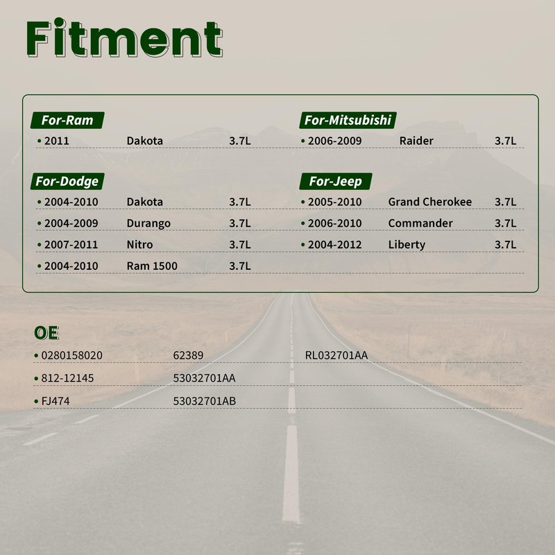- 【Fitment】for-/Dodge 2004-2010 Dakota 3.7L, 2004-2009 Durango 3.7L, 2007-2011 Nitro 3.7L, 2004-2010 Ram 1500 3.7L. for-/Jeep 2005-2010 Grand Cherokee 3.7L, 2006-2010 Commander 3.7L, 2004-2012 Liberty 3.7L. for-/Mitsubishi 2006-2009 Raider 3.7L, -/RAM 2011 Dakota 3.7L, 2011-2012 1500 3.7L.