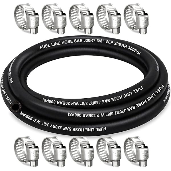 Fuel Line 3/8 Inch ID, Fuel Hose 10FT, J30R7 Fuel Line Hose NBR with 10 Clamps.