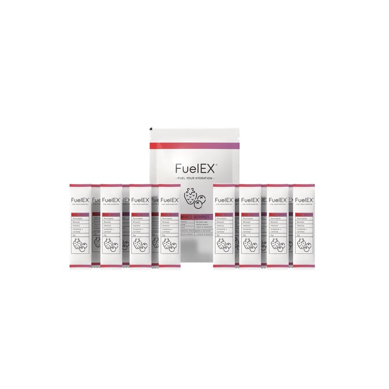 FuelEX Electrolytes/Hydration Powder (Informed Sport certified) - Electrolytes, Vitamins (B, C, D & K), Minerals, Carnitine & Glutamine for Hydration & Performance - Mixed Berries Flavour