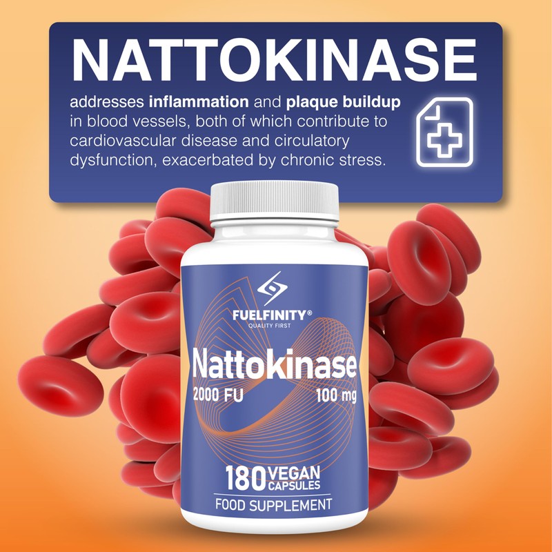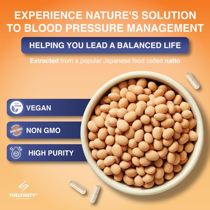FuelFinity NoN-Gmo Nattokinase 2000FU | 180 days supply | Cardiovascular Support | Long term tested dosage 100mg contributing to blood circulation | FuelFinity? Excellent Manufacturing Standards | Vegan (1 Pack)