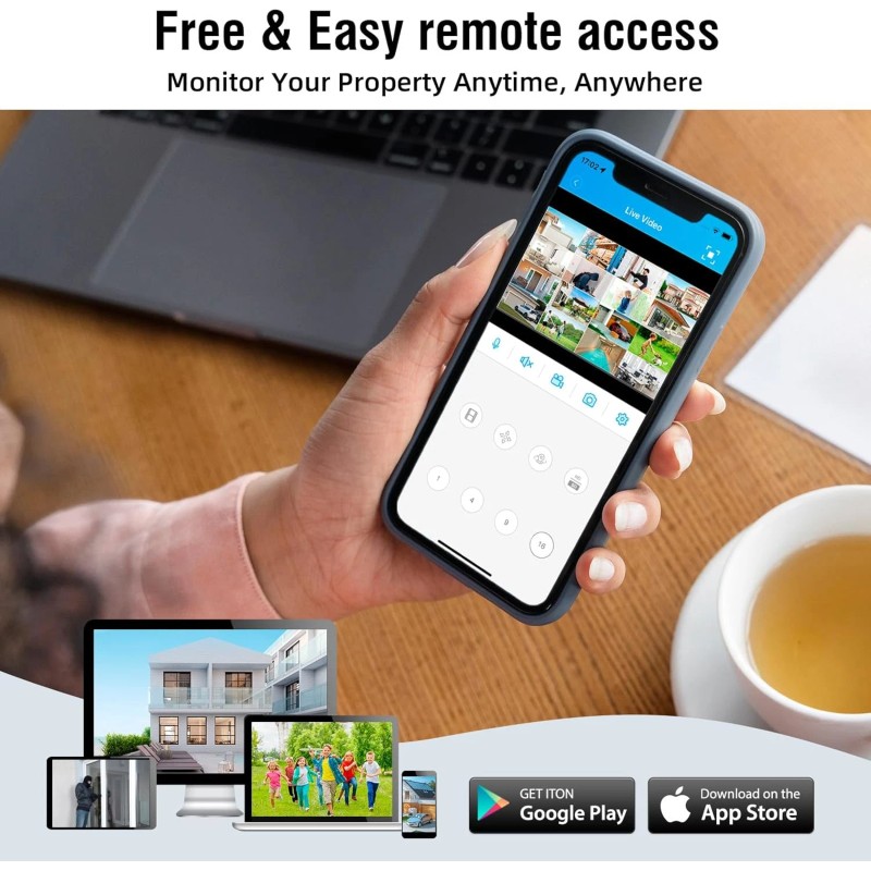 - 【Remote Access】Our 16CH security camera dvr with 1TB hard drive can help you view live broadcasts or replay recordings anytime, anywhere with your smartphone, tablet or PC, without worrying about geographical restrictions and not missing any exciting moments. Whether in the office or on the go, you just need a gentle touch, you can keep track of the security updates at home or work.