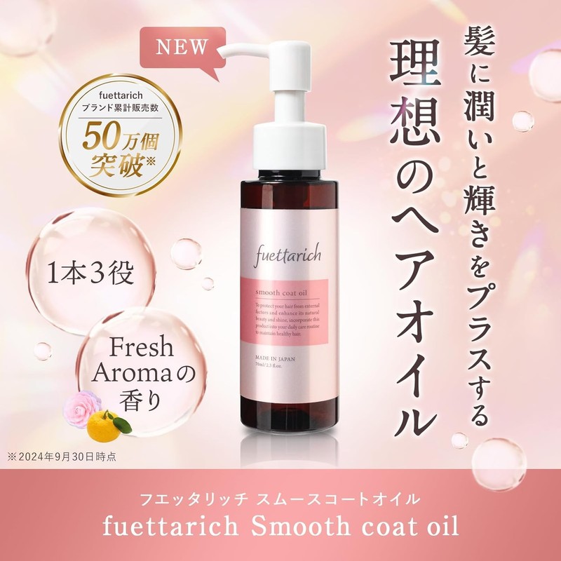 - (Beautiful all day long) Fuettachi Smooth Coat Oil is a luxurious blend of ingredients that repair hair damage and moisturize. Rich nutritional ingredients penetrate the hair to properly repair damaged areas. Effects may vary from individual