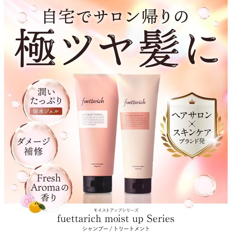 - The use of the set improves synergy effects. A hair care set of Fuettarich moist-up gel shampoo, and moist up treatment. With just shampoo it moisturizes your hair and scalp, the treatment gives your hair a refreshing scalp environment. Use it together to make you feel more beautiful hair. Please be aware that there may be individual differences in effects