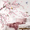 FUFUQUARE Pink Cherry Blossom Tree Wall Stickers Spring Birds on Flower Branch Wall Art Decal Peel and Stick for Living Room Bedroom Nursery Decor