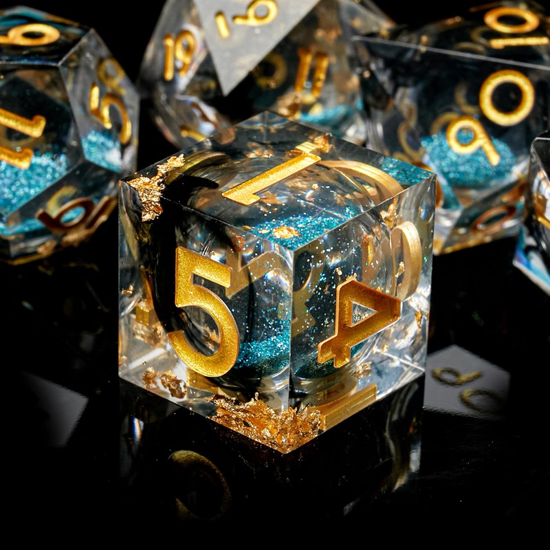 - Number of pieces: Set includes 7 resin dice, featuring D4, D6, D8, D10, D12, D20, and D%