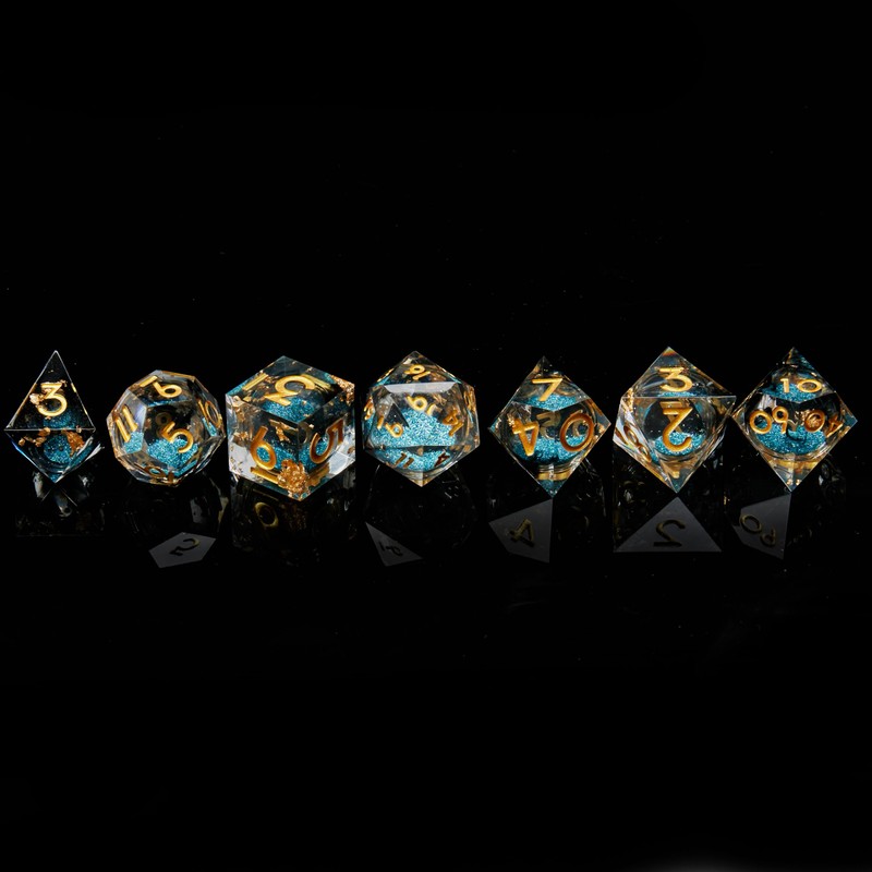 FugaCity DND Dice Set,Liquid Core Handmade Sharp Edge 7 Piece Resin Dice-Dungeons and Dragons Polyhedral Dice Set, D&D Dice Set with Gift Dice Case for RPG MTG Table Games (