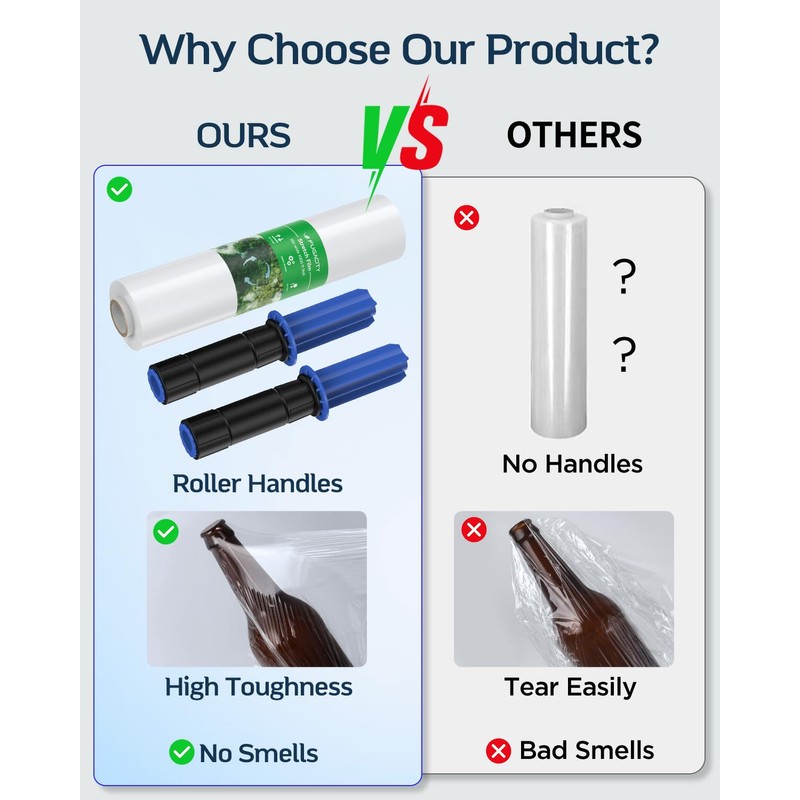 - EASY OPERATIONAfter 2 free handles applied, this plastic wrap is pretty easy to use, making the process so much easier. Just simply insert the handles on both ends of the roll and start wrapping.