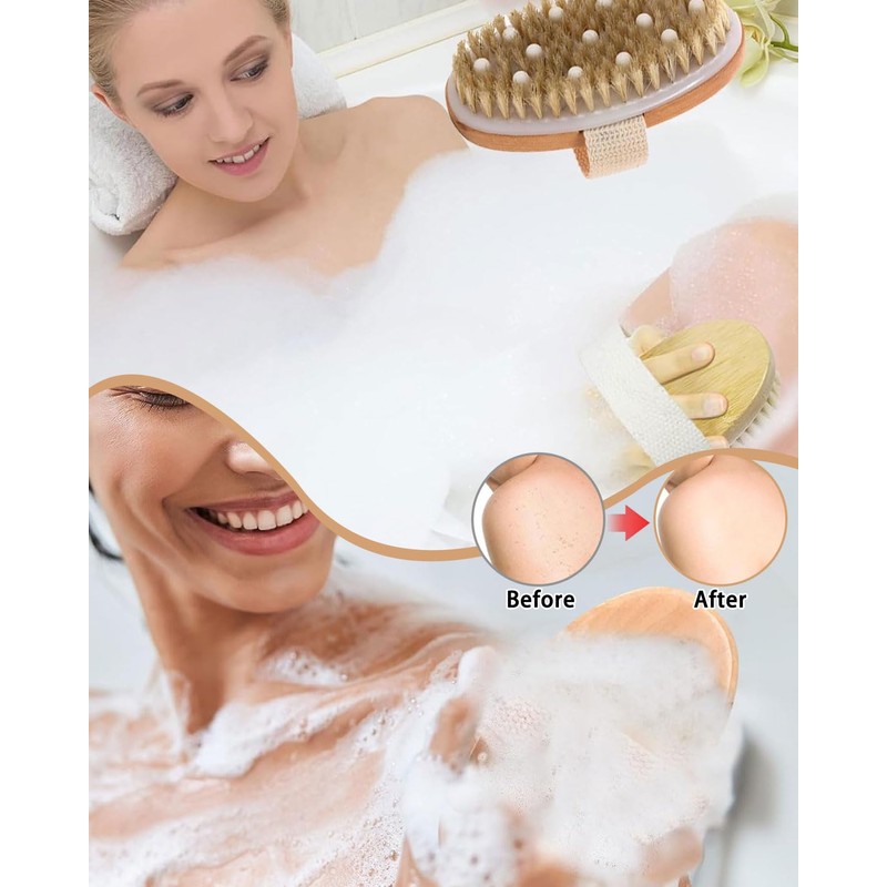 FUGLUS 1pcs Trockenbürste, Körperbürste, Peelingbürste, natürliche Borsten, Badebürste zum Entfernen abgestorbener Haut, Cellulite, verbessert Lymphfunktionen, Peeling