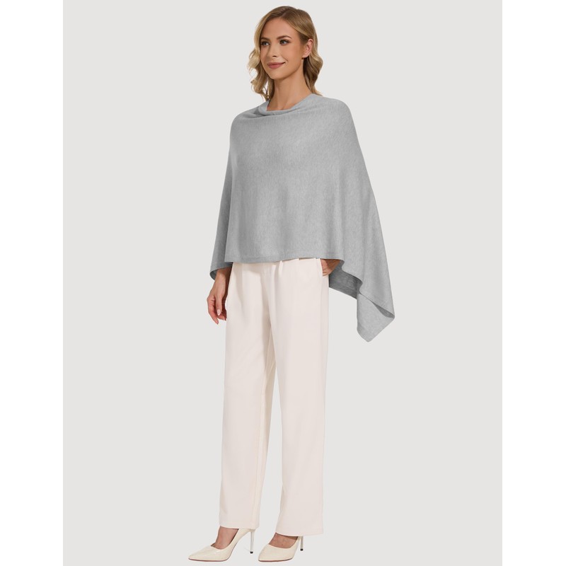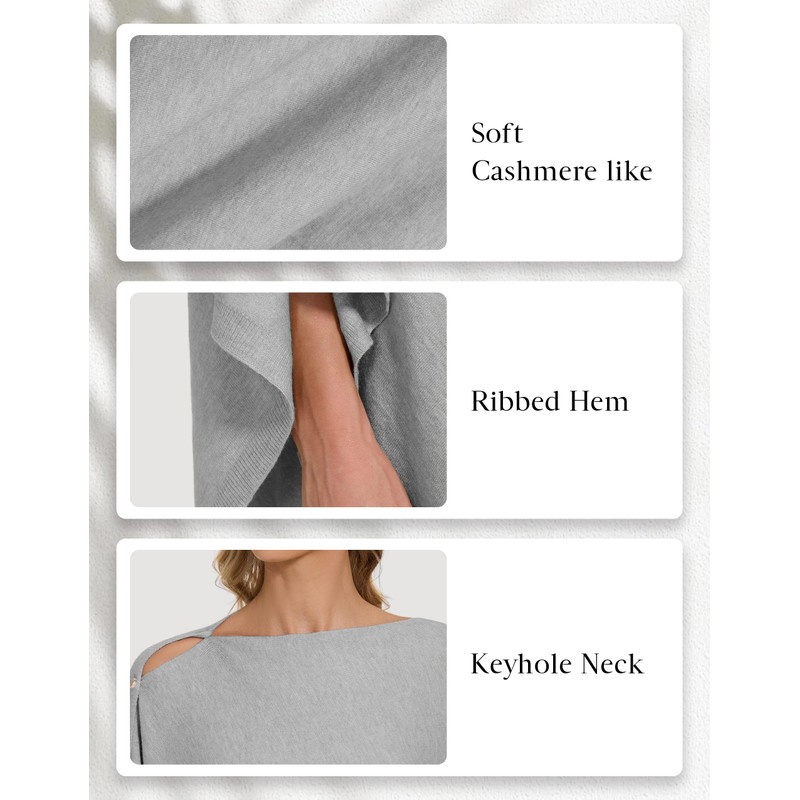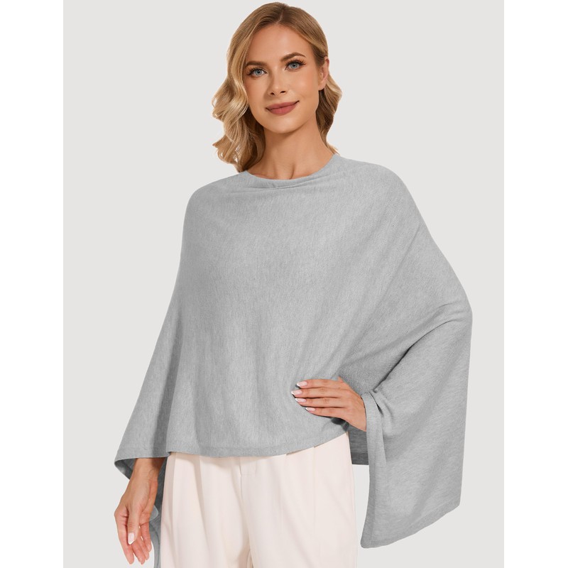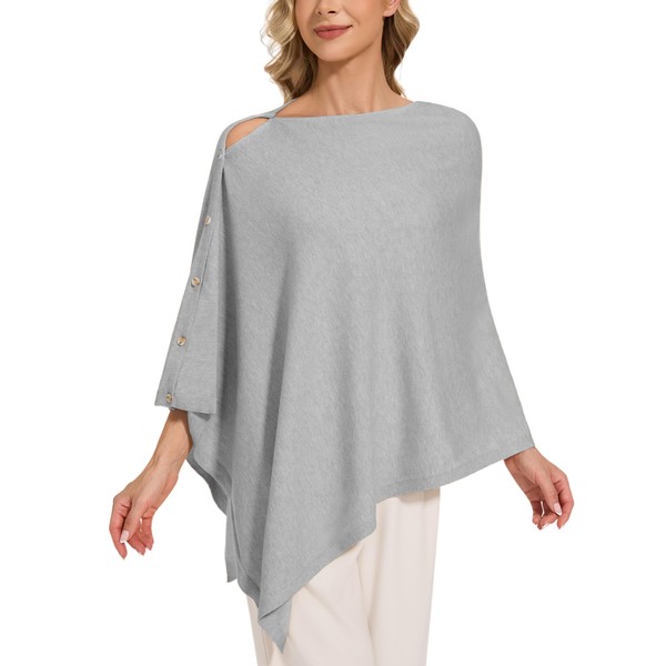 FUGREEN Women's Button Ponchos Versatile Poncho Sweater Kintted Lightweight Travel Shawls Soft Scarf for Spring Fall Winter grey