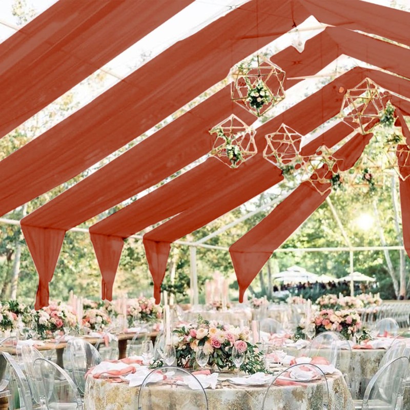 ◆1. Size & Color-- This package include 4 pack 5FT width x 20FT height terracotta ceiling fabric draping fabric.