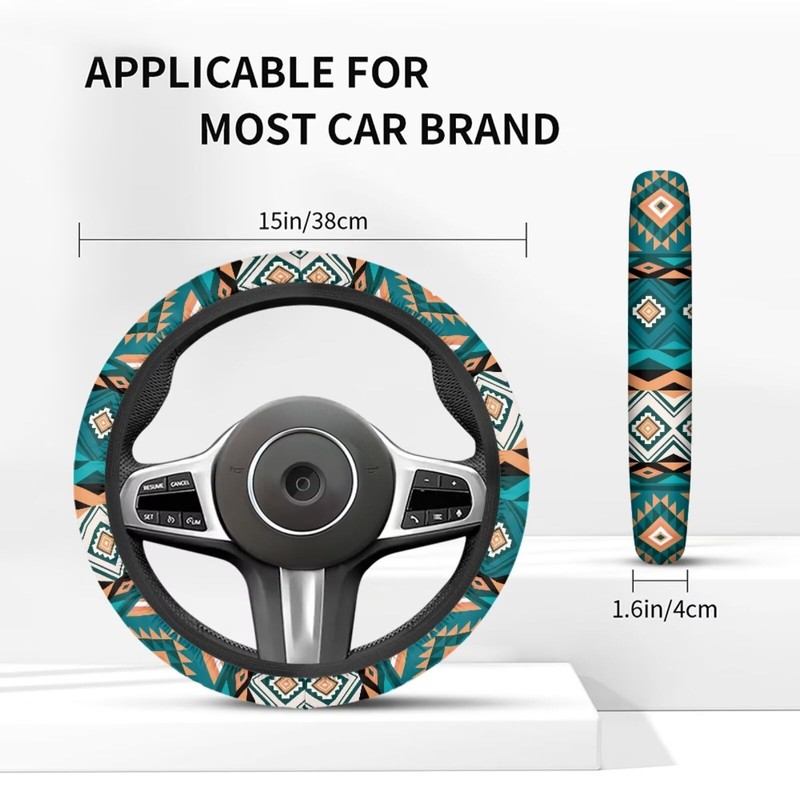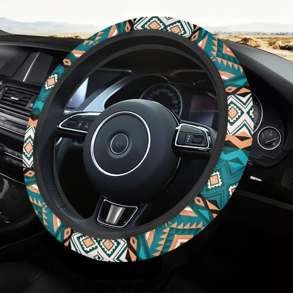 FUIBENG Steering Wheel Cover for Women Men Girls, Universal 15 Inch Anti Slip Steering Wheel Protector Car Accessories Interior for Auto Truck SUV - Westen Aztec Native