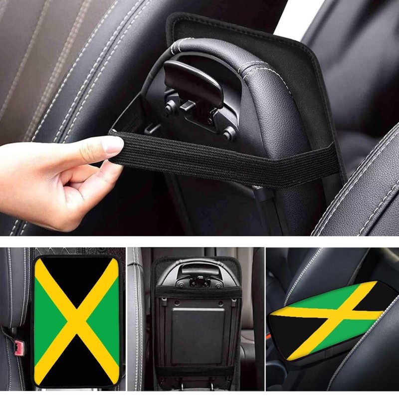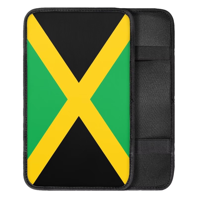 FUIBENG Vehicle Center Console Armrest Cover Pad, Universal Fit Soft Comfort Center Console Armrest Cushion for Car, Jamaica Flag