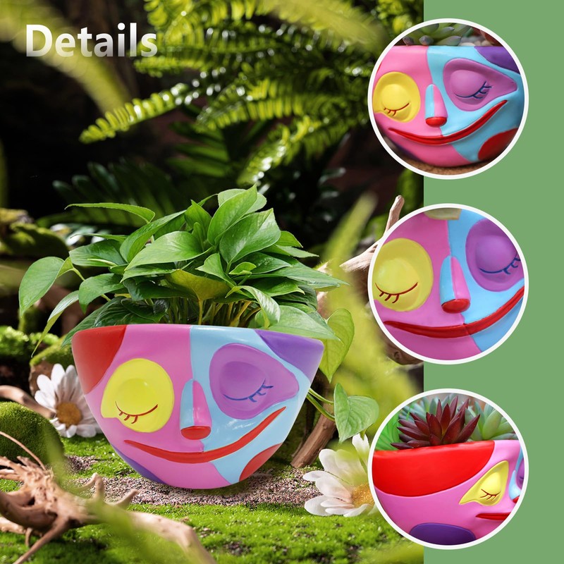 - Einzigartiges Design: Die farbenfrohe, böhmische Gestaltung des abstrakten Gesichts wird Sie begeistern. Das fröhliche und gleichzeitig entspannte Lächeln des dekorativen Kopfpflanzers bringt Ihre Pflanzen und Blumen besonders zur Geltung und verleiht Ihrem Zuhause eine frische, lebendige Atmosphäre.
