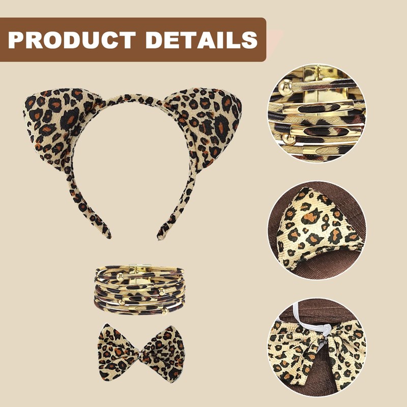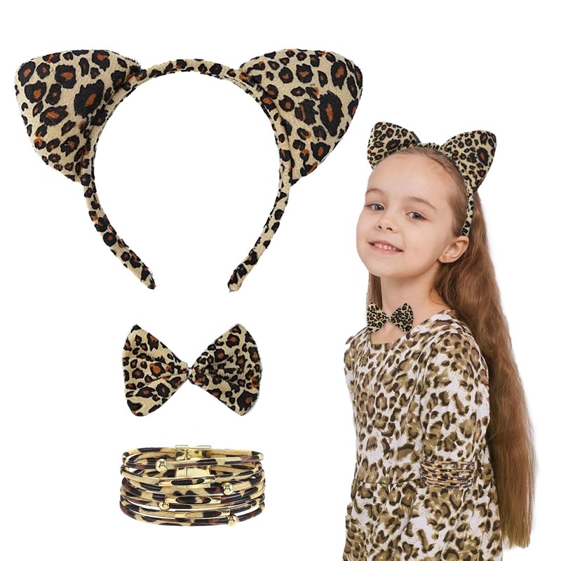 - 3 PIECES LEOPARD PATTERN SET: Set includes 1 ear hair band, 1 bow and 1 bracelet for quick and complete wear.