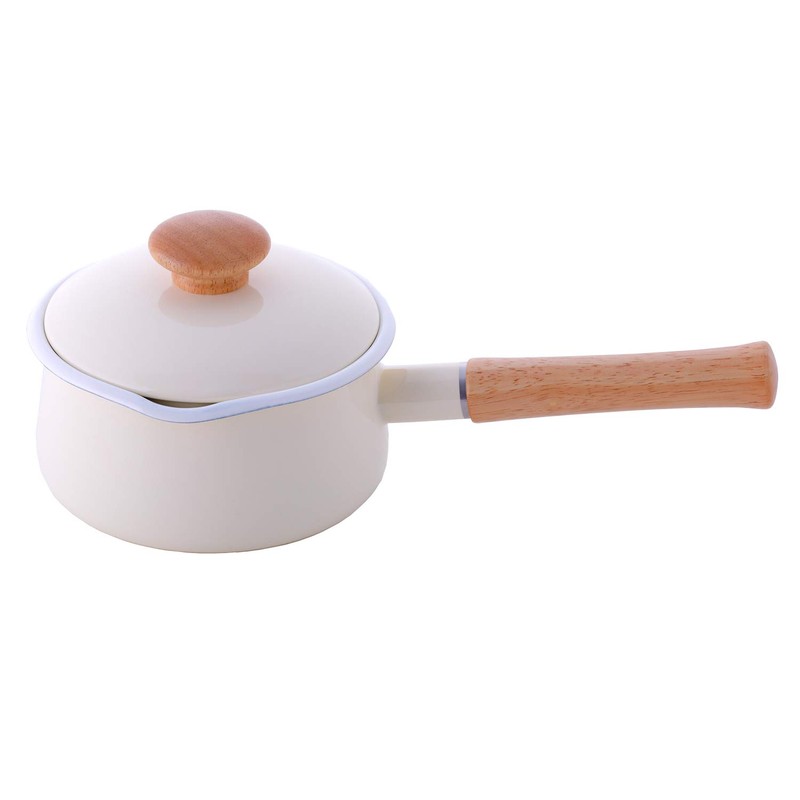 Fuji Enamel Milk Pan with Lid, 5.9 inches (15 cm), 0.4 gal (1.2 L), Induction Compatible, Vanilla