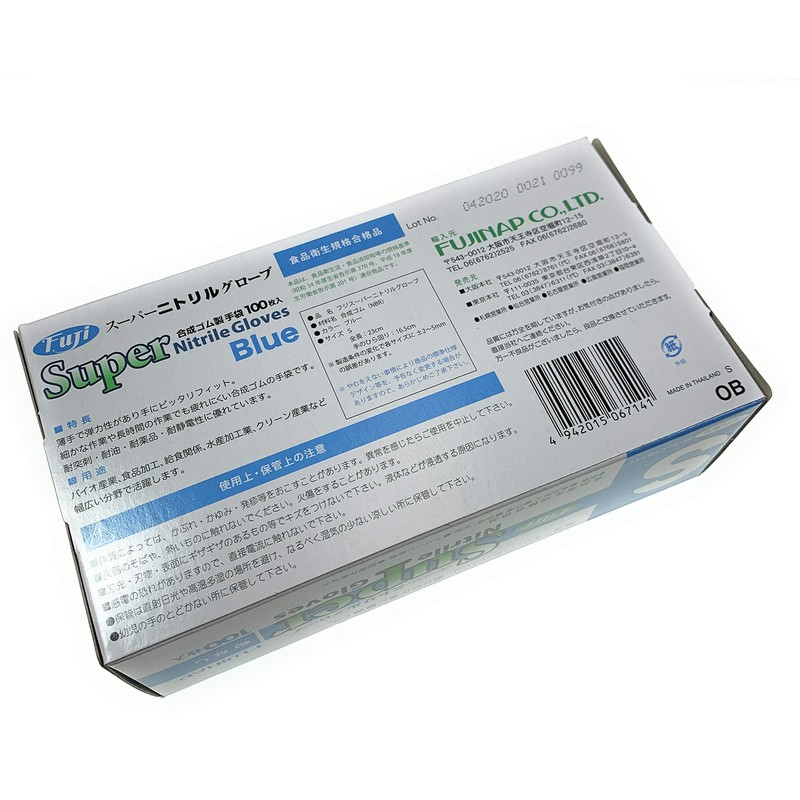 Fuji Super Nitrile Gloves, Blue, Powder-Free, Choose Your Size, S, M, L, 100 Sheets (S)
