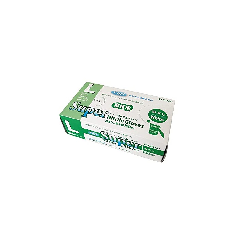 Fuji Super Nitrile Gloves, White, Large, Powder Free, 100 Count