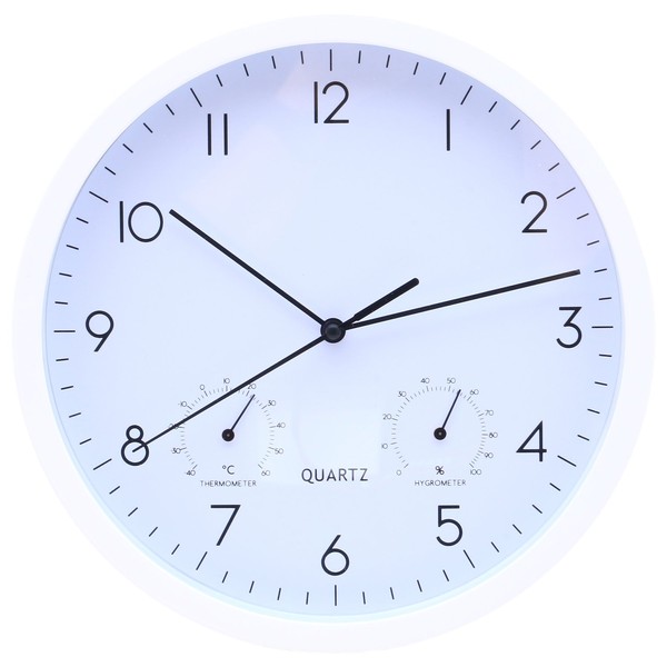 Fujiboeki 26332 Wall Clock, Diameter 10.0 inches (25.4 cm), White, Temperature and Hygrometer, Sweep, Continuous Second Hand, Quiet, Bezel