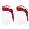 FUJIDENSO 2 Pack Syrup Dispenser 10oz (200mL) Polyethylene Plastic Bottle with Red ABS Top No-Drip Pourers for Maple Syrup/Honey/Pancake Syrup/Sauces/Salad Dressings
