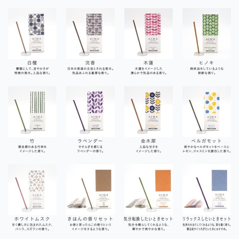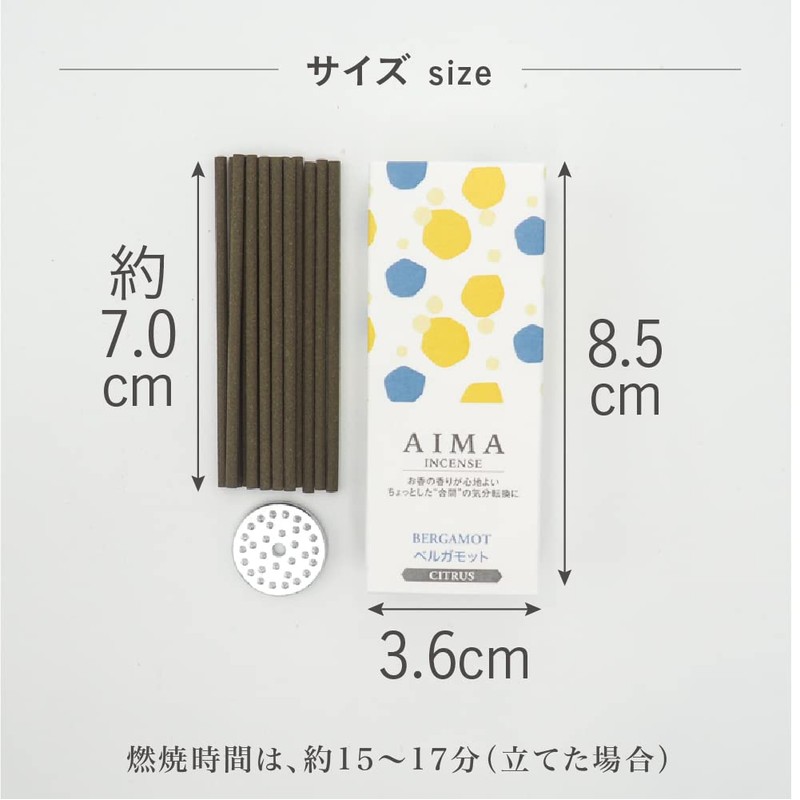 FUJIEI AIMA Bergamot Incense Holder Included, 15 Sticks A-008, Approx. 2.8 inches (7 cm), Stick Type, Northern Europe, Modern, Japanese and Western Eclectic Relaxing Fragrance, Aroma, Made in Japan