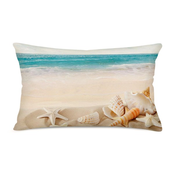 Fukeen Summer Beach Throw Pillow Covers Cotton Linen 12x20 Inch Blue Ocean Sea Starfish Scallop Pillow Cases Coastal Nautical Theme Home Decorative Pillows Cushion Cover for Sofa Couch Chair Outdoor