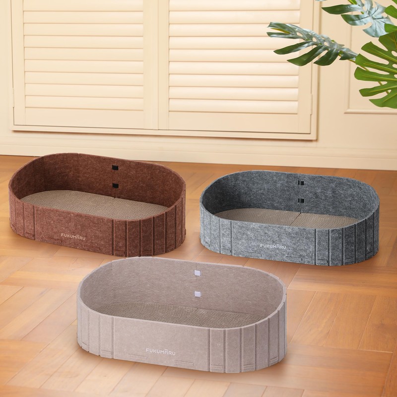 • Warm Natural Felt: The outer layer of the cat scratching board is made of felt, which provides sound insulation and warmth while gently protecting the cat's paws. The felt used in FUKUMARU cat scratchers is a natural material that is friendly to both cats and humans.