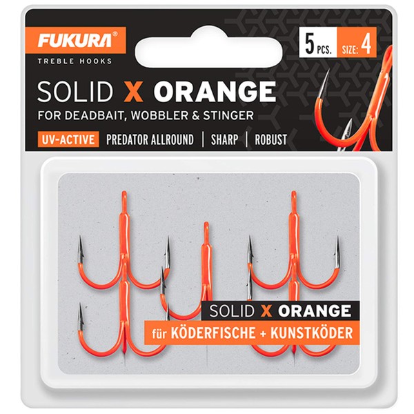 Fukura Solid X Orange Treble Hooks Size 4 Pack of 5