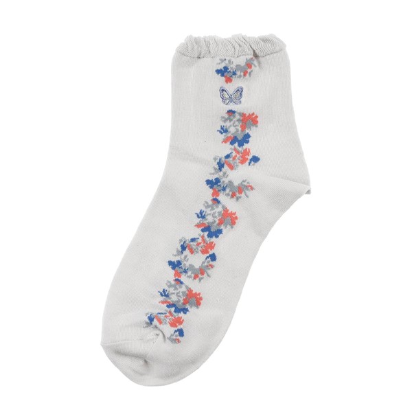 Fukusuke 3100Q04M Women's Socks, Side Floral Pattern, Short Socks, 2 Pairs Set, Silk Protein Processing, Fukusuke, gray (light gray)