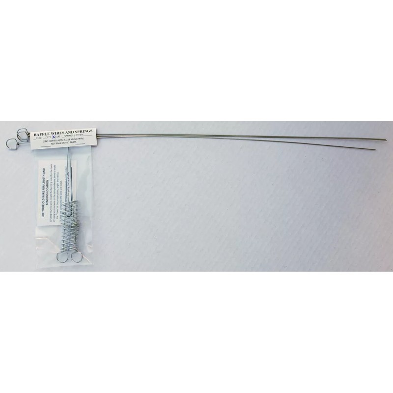 The wires and springs are made from zinc coated ASTM A-228 music wire. They were tested against OEM Cessna baffle wires and passed our rigidity, bend retention and dead weight testing.