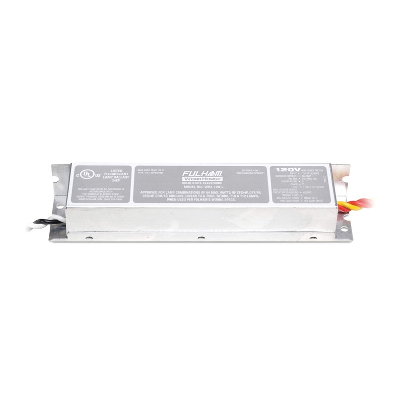 The WorkHorse 3 Versatile Fluorescent Ballast from Fulham Lighting will help you keep any room perfectly lit. With convenient Instant Start in a linear model with side leads, this adaptable lighting ballast is ideal for installation in all sorts of rooms, whether in the home, an office, or even hallway lights. This lighting equipment is perfect for use by professionals or for home repair projects.