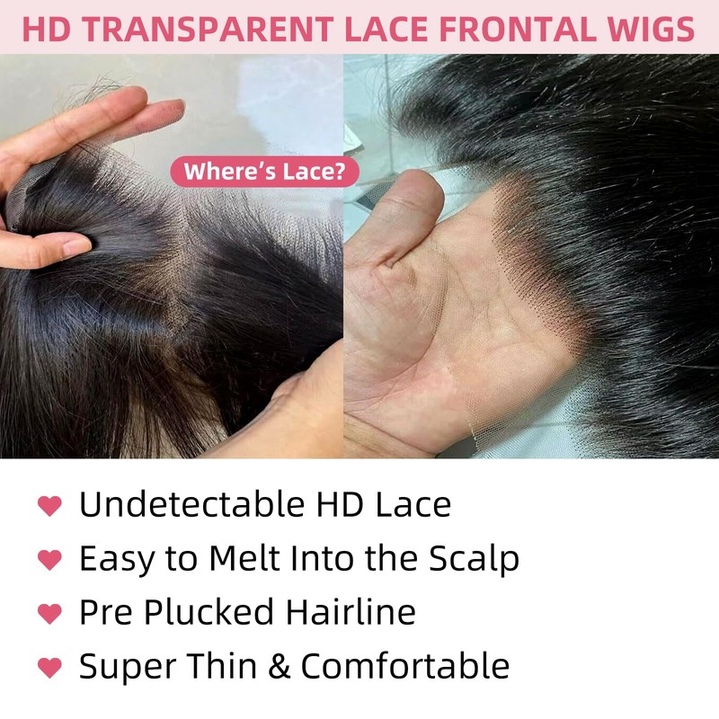 (7)Wig Hairline: Pre Plucked Bleached Knots Lace Front Wigs Human Hair Wet and Wavy Full Frontal Wig.