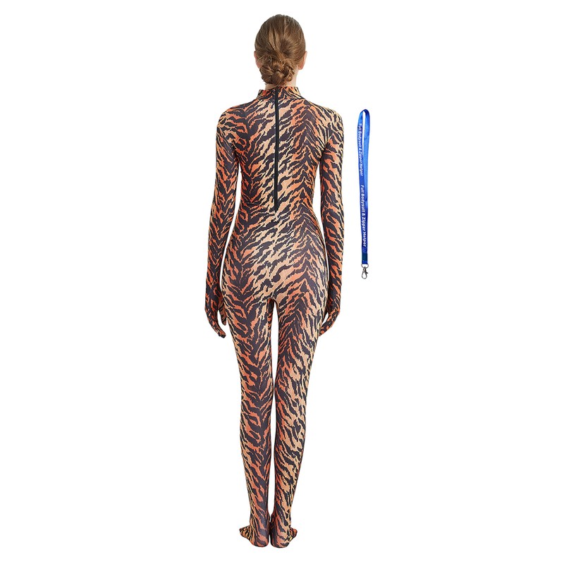 Full Bodysuit With Zipper Helper Womens Costume Without Hood Spandex Stretch Zentai Unitard Body Suit (Small, Tiger)