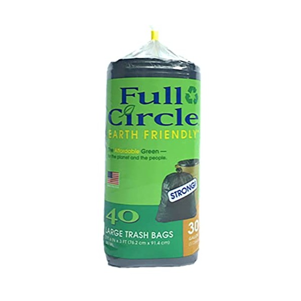 Full Circle Large 30-gallon biodegradable black trash bags, quantity 40 bags